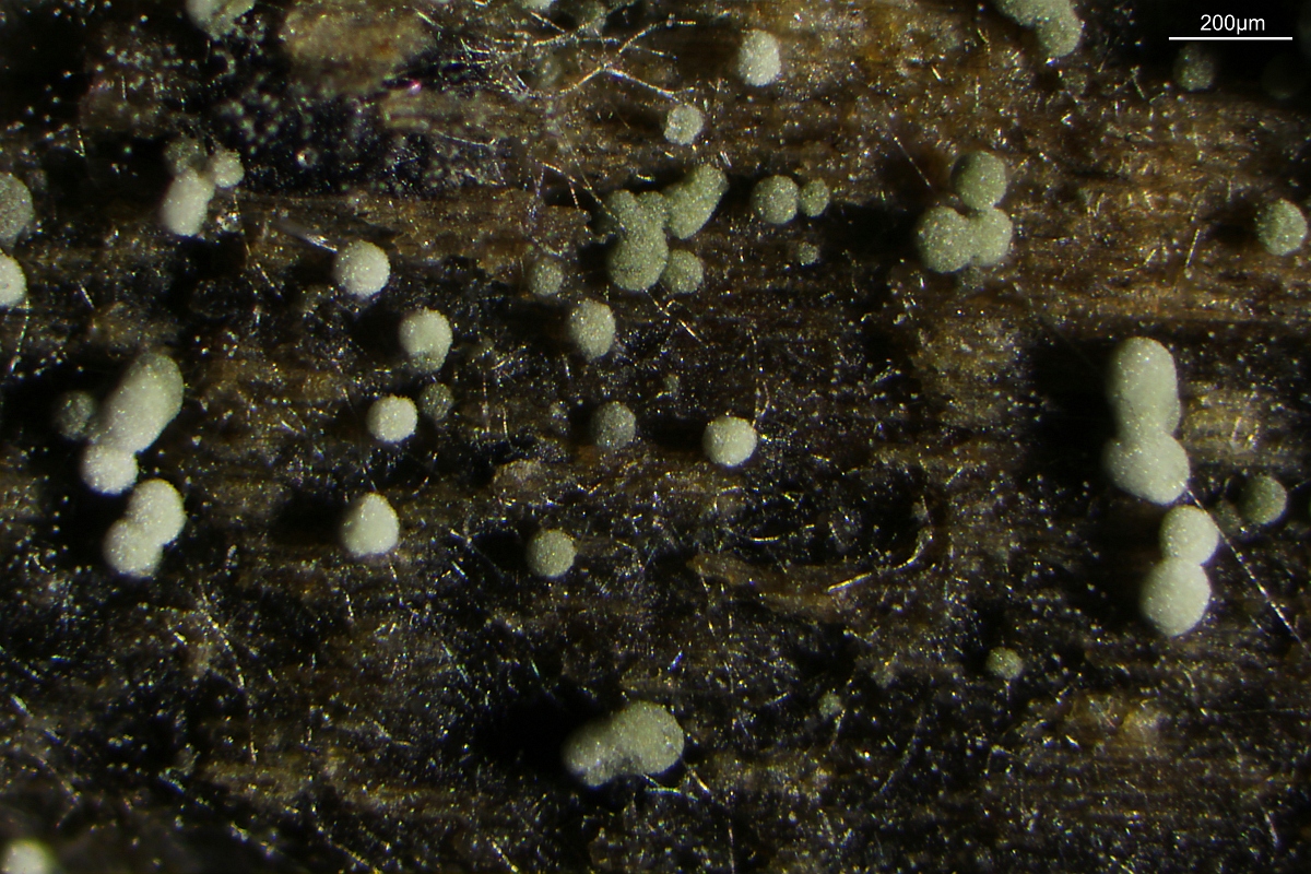 Der Pilz ist sehr klein und mit der Lupe nicht zu erkennen. Ich fand nur 4