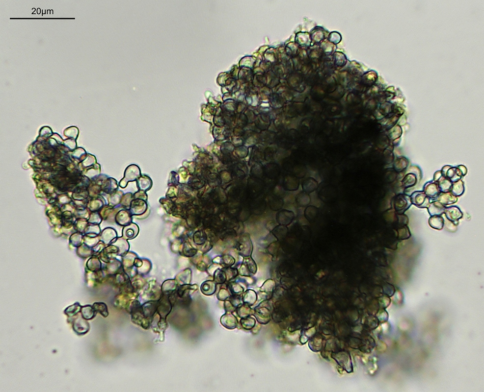 Die Konidienkugeln haben sich noch dunkler verfärbt: