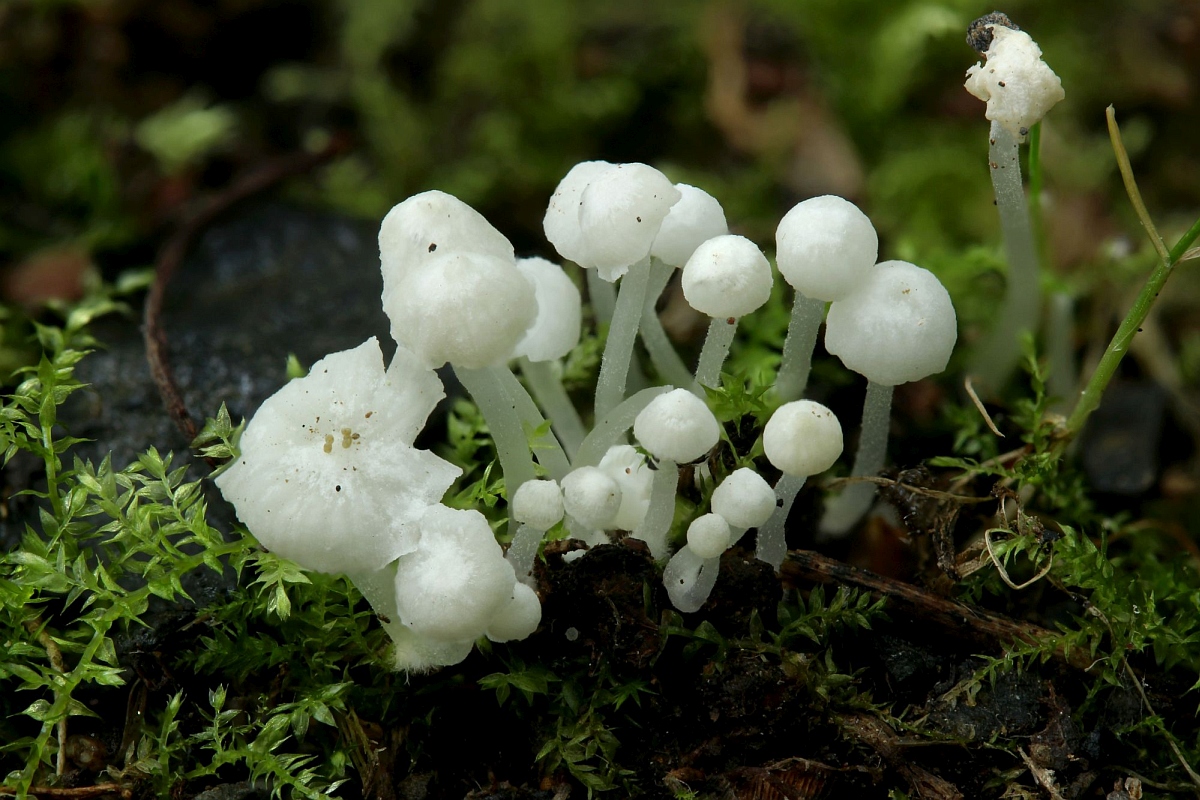 zerrieben, einfach so riecht da gar nix. Das ist zweifelsfrei Hemimycena/Atheniella